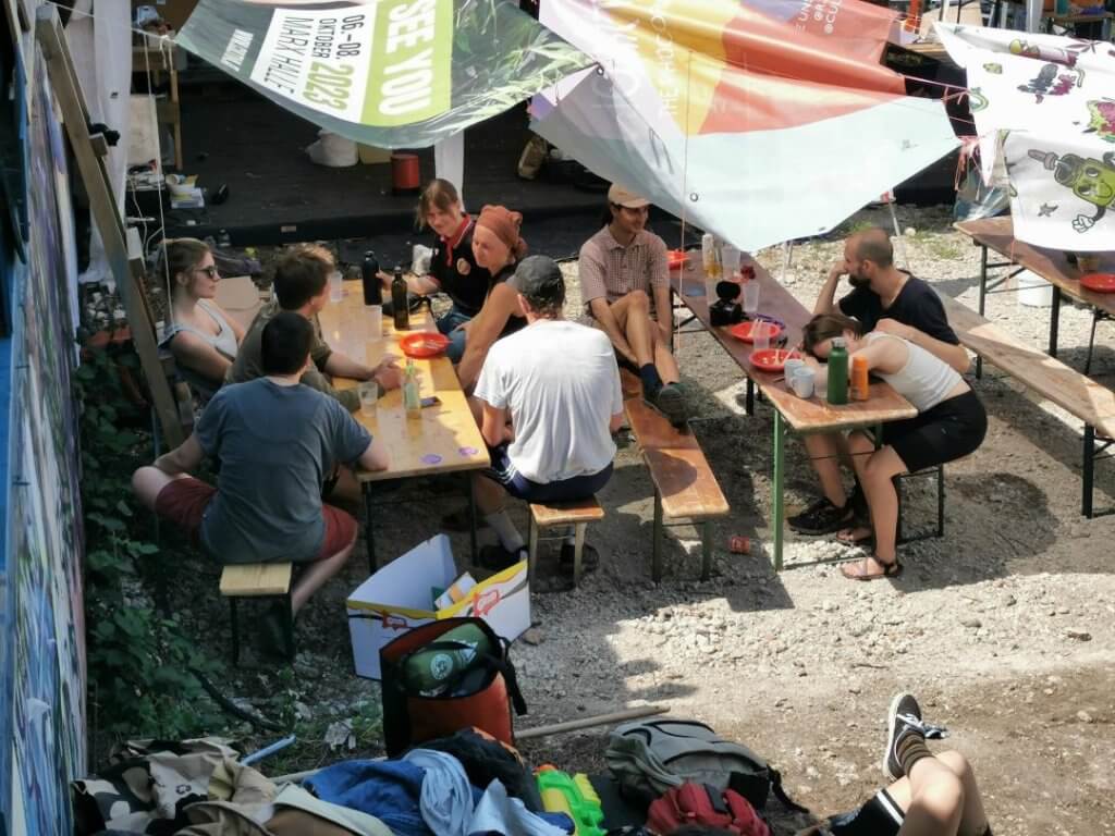Unser Camp 2025 hat vom 24. Mai bis zum 1. Juni in St. Marx in Wien in Kooperation mit der Initiative St. Marx für Alle stattgefunden (hier mehr Infos zur Initiative). Eine Woche lang entstand dort ein Raum für Bildung, Vernetzung und Austausch zwischen verschiedenen zivilgesellschaftlichen Gruppen und interessierten Personen.